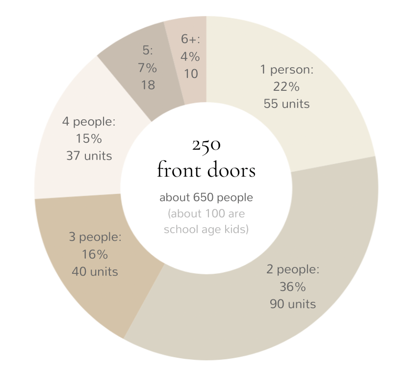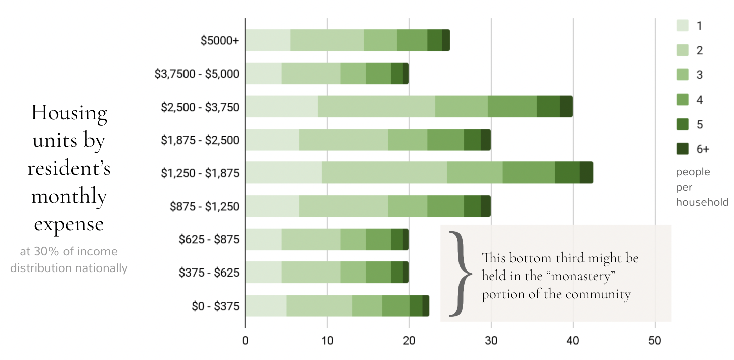 This means that, for example, in a small community with 250 dwellings, there would be an appropriate amount, size, and cost of housing to house a congruent ratio of the whole national pie…